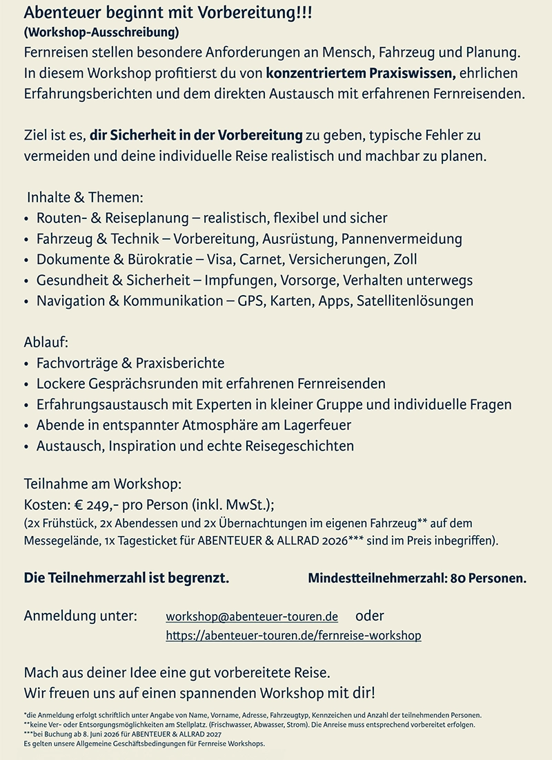 Fernreise-Workshop: Abenteuer beginnt mit Vorbereitung