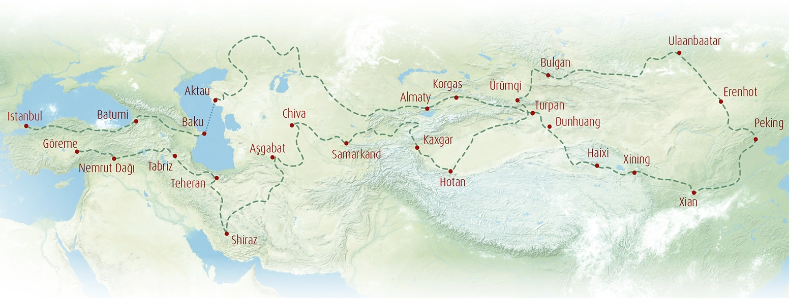 Die Traumfernreise entlang der alten Handelsroute entführt Sie in den Wilden Kaukasus. Per Autofähre geht es von Baku aus über das Kaspische Meer. Bald rollen wir auf abenteuerlichen Straßen durch die unfassbaren Weiten der Kasachensteppe bis hin zur chinesischen Grenze.